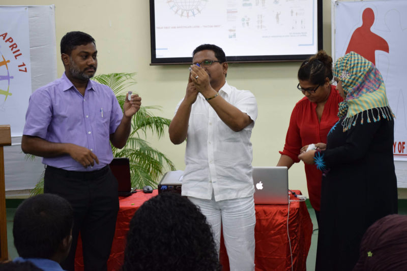 Dr. Niyaf and Mr. Ahmed Naseer explaining on how to use factor